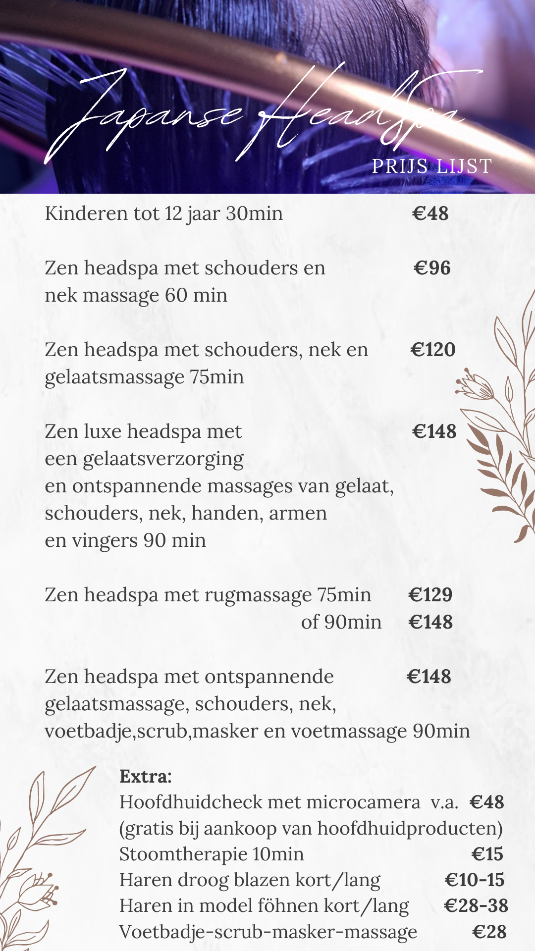 Prijslijst headspa